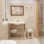 Her özel banyoda banyo küveti, duş vardır.